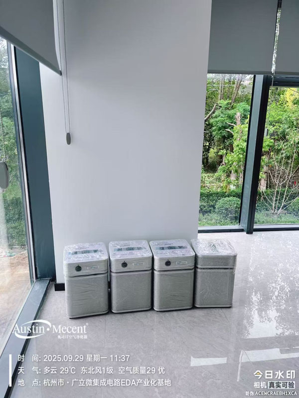 杭州广立微作为一家上市的半导体相关企业,新办公室刚装修完,装修异味很大,经过检测发现甲醛超标,于是选择奥司汀(Austin·Mecent)空气净化器来解决新装修带来的室内空气问题,为员工打造了一个更安心的办公环境。