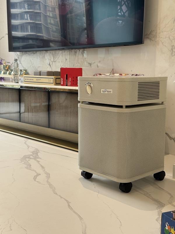 奥司汀的工程师上门后,先用专业仪器对客厅、儿童房和主卧进行了全面的空气质量检测,发现甲醛和TVOC数值都已超标,于是建议在客厅放置一台大净化量的奥司汀HM400商用机型,而在儿童房和主卧则配置小户型HM200,确保夜间休息不受打扰。